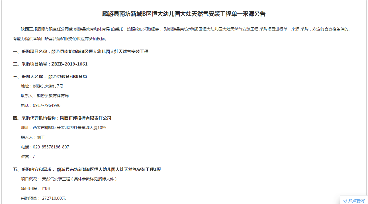 麟游縣南坊新城B區(qū)恒大幼兒園大灶天然氣安裝工程單一來源公告