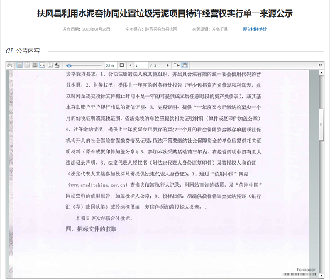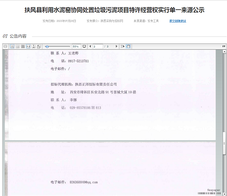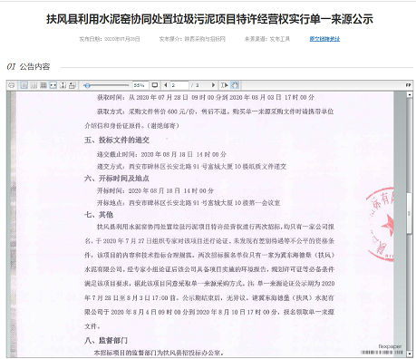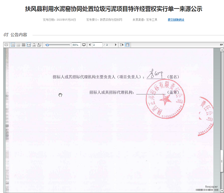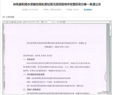 扶風(fēng)縣利用水泥窯協(xié)同處置垃圾污泥項目特許經(jīng)營權(quán)實行單一來源公示