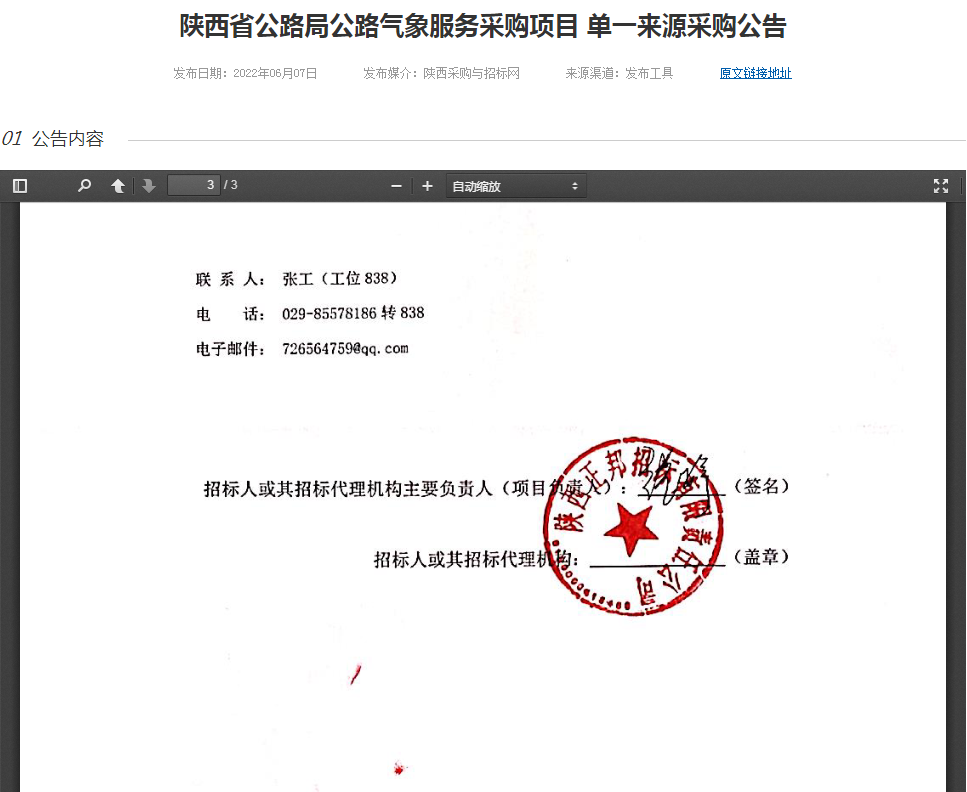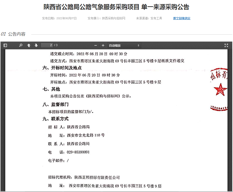陜西省公路局公路氣象服務(wù)采購(gòu)項(xiàng)目 單一來(lái)源采購(gòu)公告