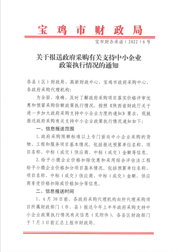 關(guān)于報送政府采購有關(guān)支持中小企業(yè)政策執(zhí)行情況的通知