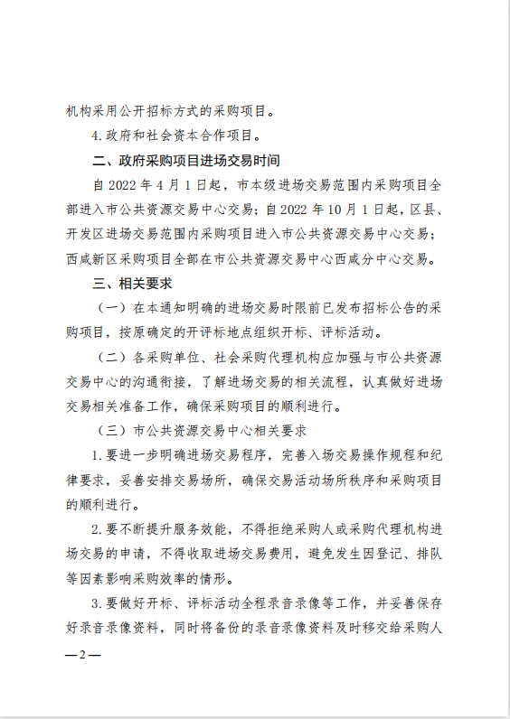 西安市財(cái)政局關(guān)于政府采購項(xiàng)目進(jìn)場(chǎng)交易有關(guān)事項(xiàng)的通知