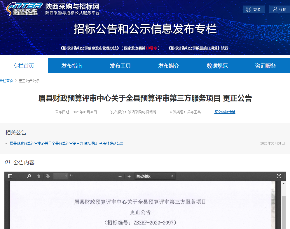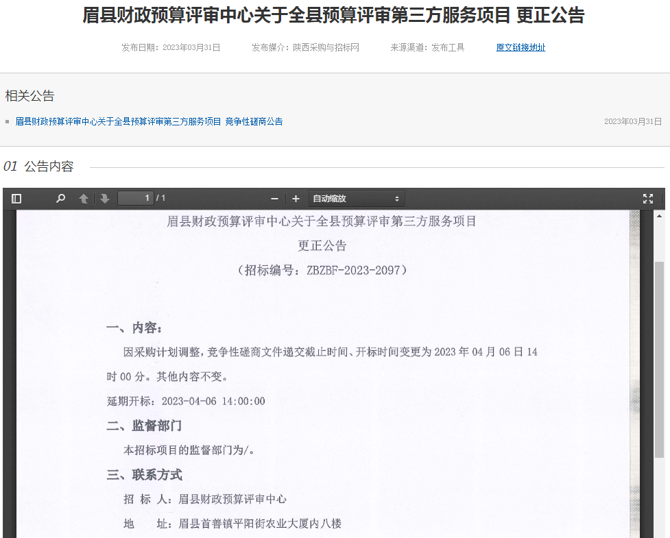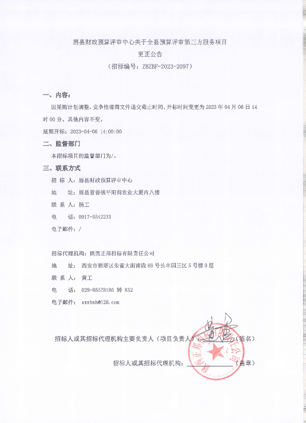 眉縣財(cái)政預(yù)算評(píng)審中心關(guān)于全縣預(yù)算評(píng)審第三方服務(wù)項(xiàng)目 更正公告